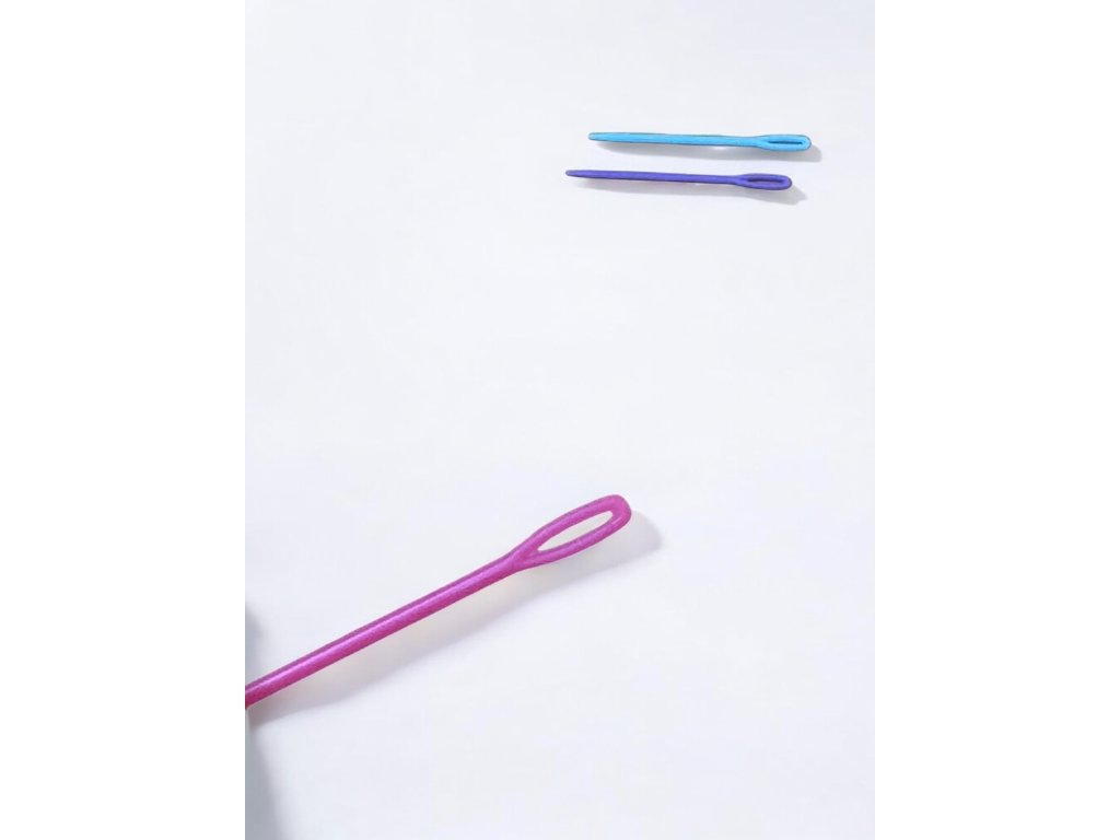 Tyto tupé jehly Vám pomohou dotáhnout Váš projekt k dokonalosti. Velké ucho zaručí jednoduchost navlečení i hrubší příze a délka 5,5 cm perfektní manipulaci při přišívání ručiček, ocásků nebo oušek :)