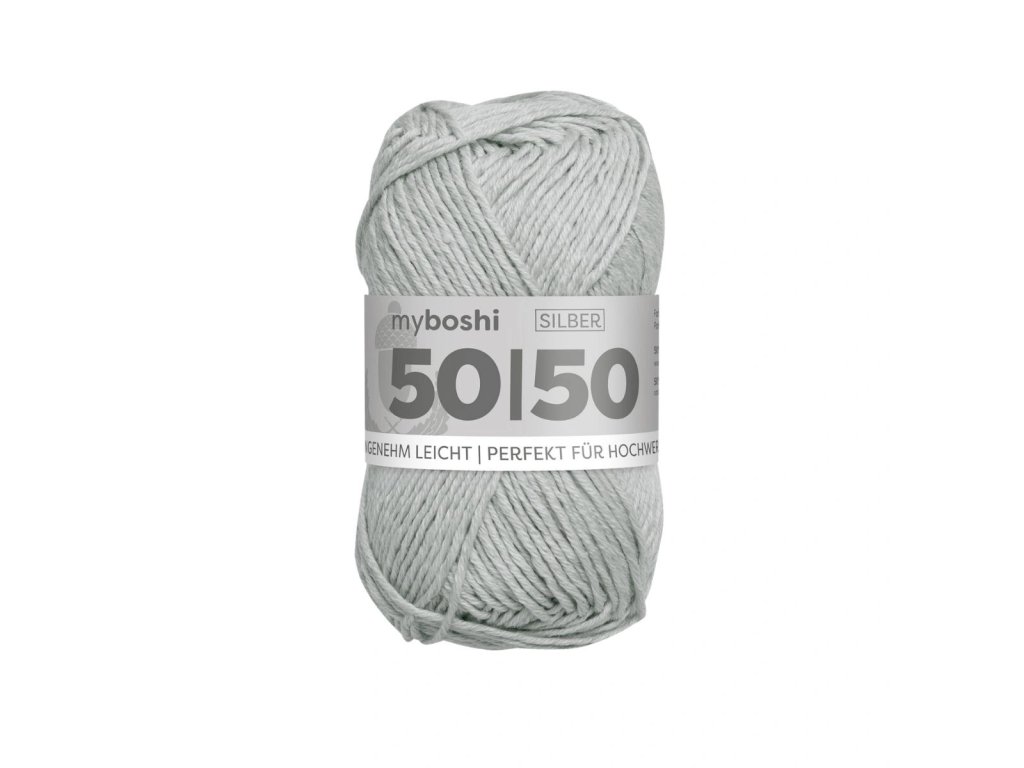 Myboshi 50/50 je exkluzívna zmes vlny merino a bavlny s hebkým povrchom. Vyrába sa z vlny merino bez mulesingu (bezbolestné zpracovanie vlny) a odolnej bavlny. Vďaka kombinácii týchto dvoch materiálov je priadza 100% prírodná, udržateľná a práca s ňou je príjemná a jednoduchá. Udržuje sa jednoducho a je možné ju prať v pračke na šetrný cyklus.