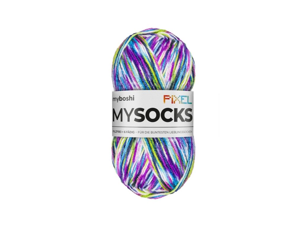 Mysocks Pixel sú k dispozícii v žiarivých dúhových farbách, zaujmú svojím nápadným farebným designom a pletú a nosia sa s radosťou. Vyberte si z početných farebných kombinácií, z ktorých každá má žiarivý, melírovaný vzor.