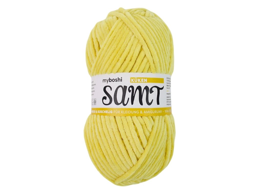 Myboshi SAMT je na dotyk veľmi príjemná žinylková priadza zo 100% nadýchaného polyesteru. Bola špeciálne vyvinutá pre amigurumi a domáce dekorácie a prichádza v klbkách veľkosti XXL.
