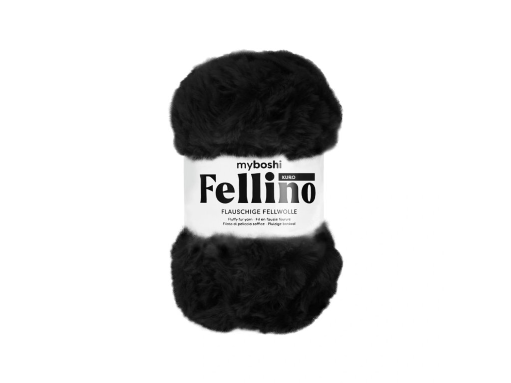 Materiál myboshi Fellino je podobný látkam z umelej kožušiny s tým rozdielom, že tu je „kožušina“ pripevnená k jedinej niti. Vďaka objemu vyzerá táto priadza pri háčkovaní alebo pletení ako súvislý povrch a keďže sa pletie silnými ihlicami/háčikom, projekt Vám bude rásť veľmi rýchlo pred očami :)